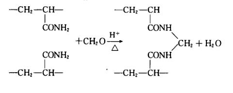 PAM與甲醛水溶液在酸性條件下共熱可發(fā)生交聯(lián)反應(yīng),分子間的酰胺基通過亞甲基而交聯(lián)成不溶性凝膠。反應(yīng)式如下: